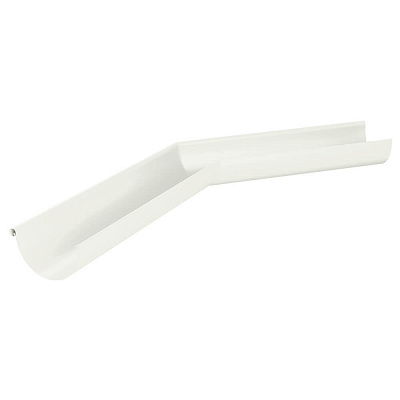 Угол желоба водостока наружный 135 градусов d125мм RAL 9010 Белый металлический - используется для надежного сопряжения двух желобов между собой на нестандартных углах 135 градусов карниза кровли. Угол желоба изготовлен без сварных сопряжений, методом прессования (глубокая вытяжка), что придает ему дополнительную коррозийную и механическую стойкость.